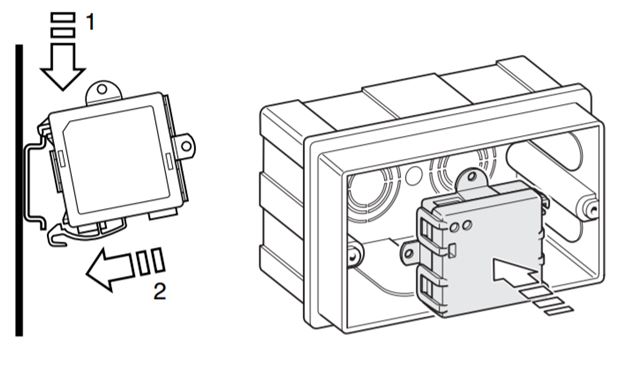 En ce qui est de l’installation du module OH/3RPI, c’est d’une grande simplicité. Il est possible de l’installer sur Rai DIN ou tout simplement dans une boite d’encastrement comme on peut le voir sur la figure ci-dessous: